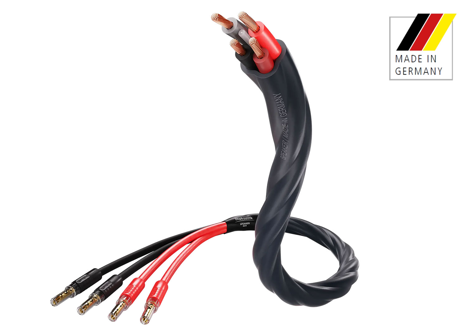The S25 Speaker 425 is the most powerful model in the series, designed for audiophile setups with high power reserves and long cable runs. The large conductor cross-section and low-inductance multicore design ensure exceptionally low-loss transmission – even under high load or long cable lengths. The sound benefits from a particularly controlled, deep-reaching bass with precise punch, clearly defined mids, and an open, detailed high-frequency reproduction. The spatial presentation is stable and wide. Thanks to high-quality materials such as fine-stranded OFC copper, solid crimp contacts, and gold-plated connectors, the signal remains unaltered along the entire length. Its discreet, functionally elegant design and surprisingly high flexibility despite the large cross-section allow for neat, unobtrusive installation – even in complex rack setups or close to walls.