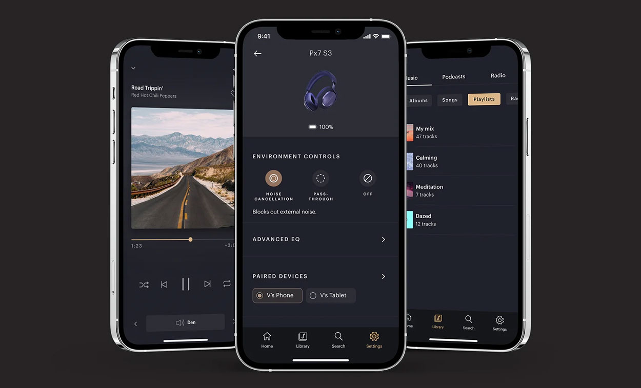 Outstanding sound, no distractions. Px7 S3 features advanced noise cancellation that you can adapt to your surroundings, with eight microphones for uninterrupted sound performance no matter where you are.