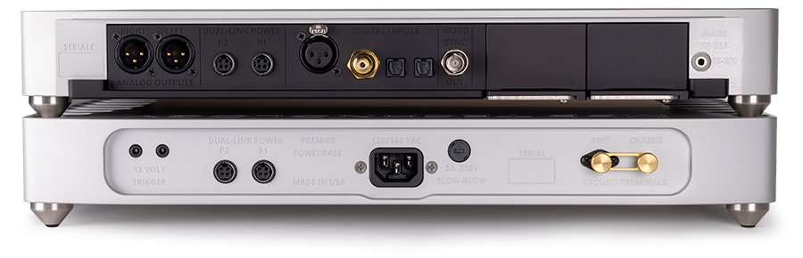 Built to accommodate modular components, the Premier Powerbase is highly adaptive, offering two dual-link power connectors, supplying four isolated power supplies. With the addition of dual low-noise shielded transformers, optimized power filtering, enhanced grounding and high-performance regulators, your DAC will be unrivaled in its performance.