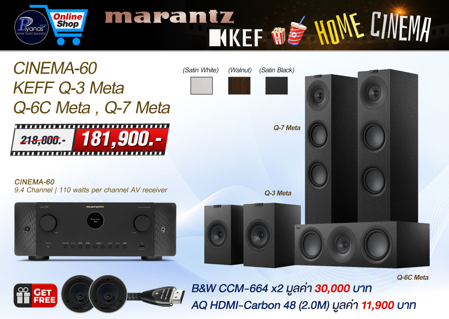 AQ HDMI-Carbon 48 (2.0M) มูลค่า 11,900 บาท/B&W CCM-664 x2 มูลค่า 30,000 บาท