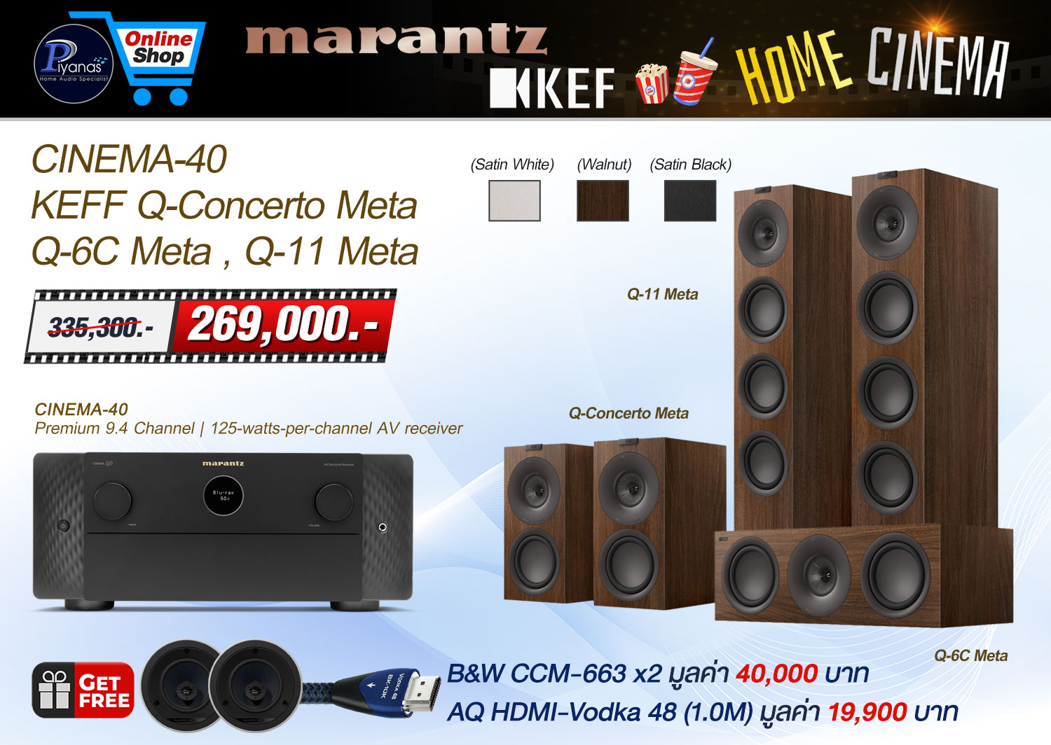 MARANTZ CINEMA-40+Q-Concerto Meta+Q-6C Meta+Q-11 Meta Premium 9.4 Channel | 125-watts-per-channel AV receiver