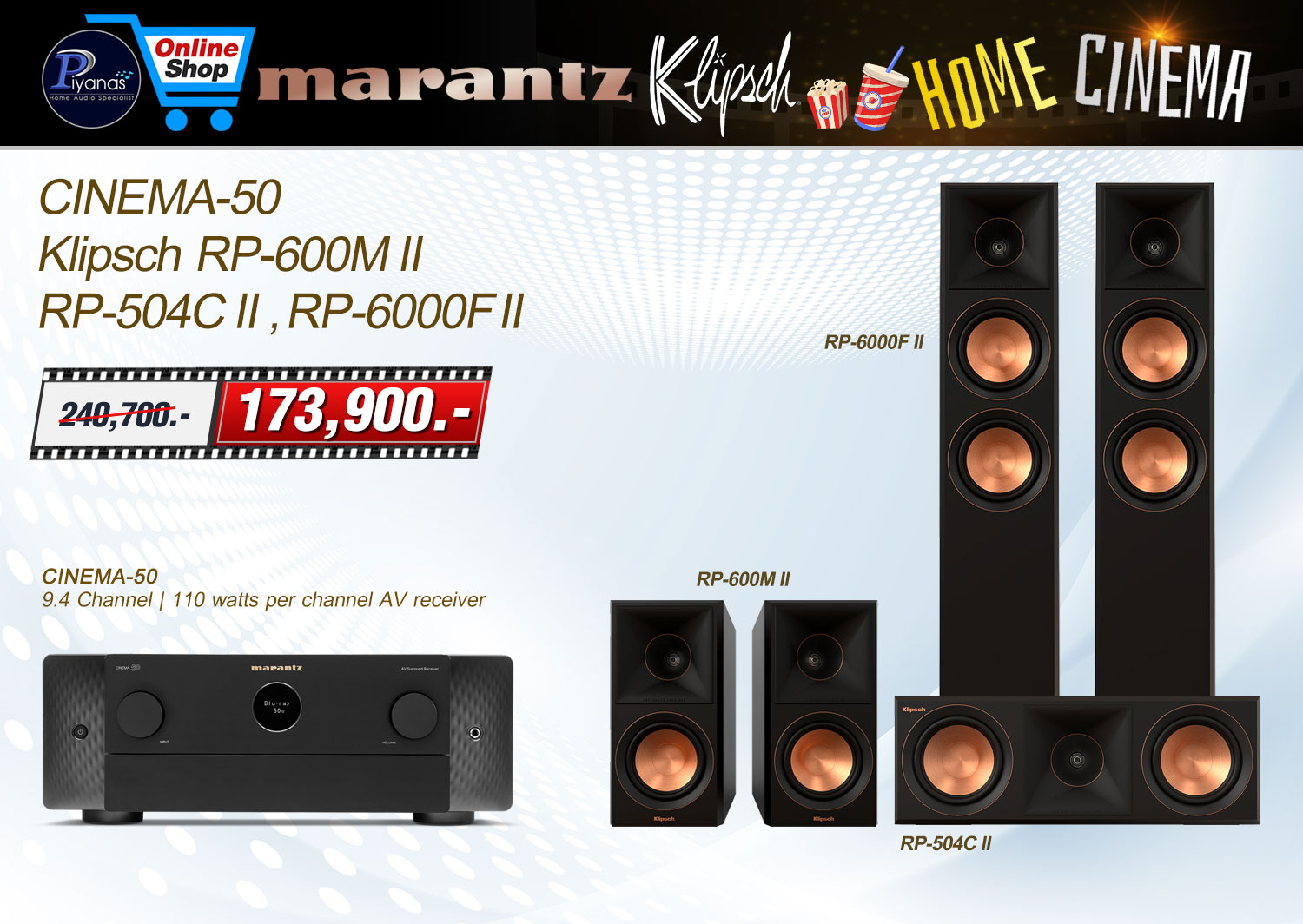 MARANTZ CINEMA-50+RP-600M II+RP-504C II+RP-6000F II 9.4 Channel | 110 watts per channel AV receiver