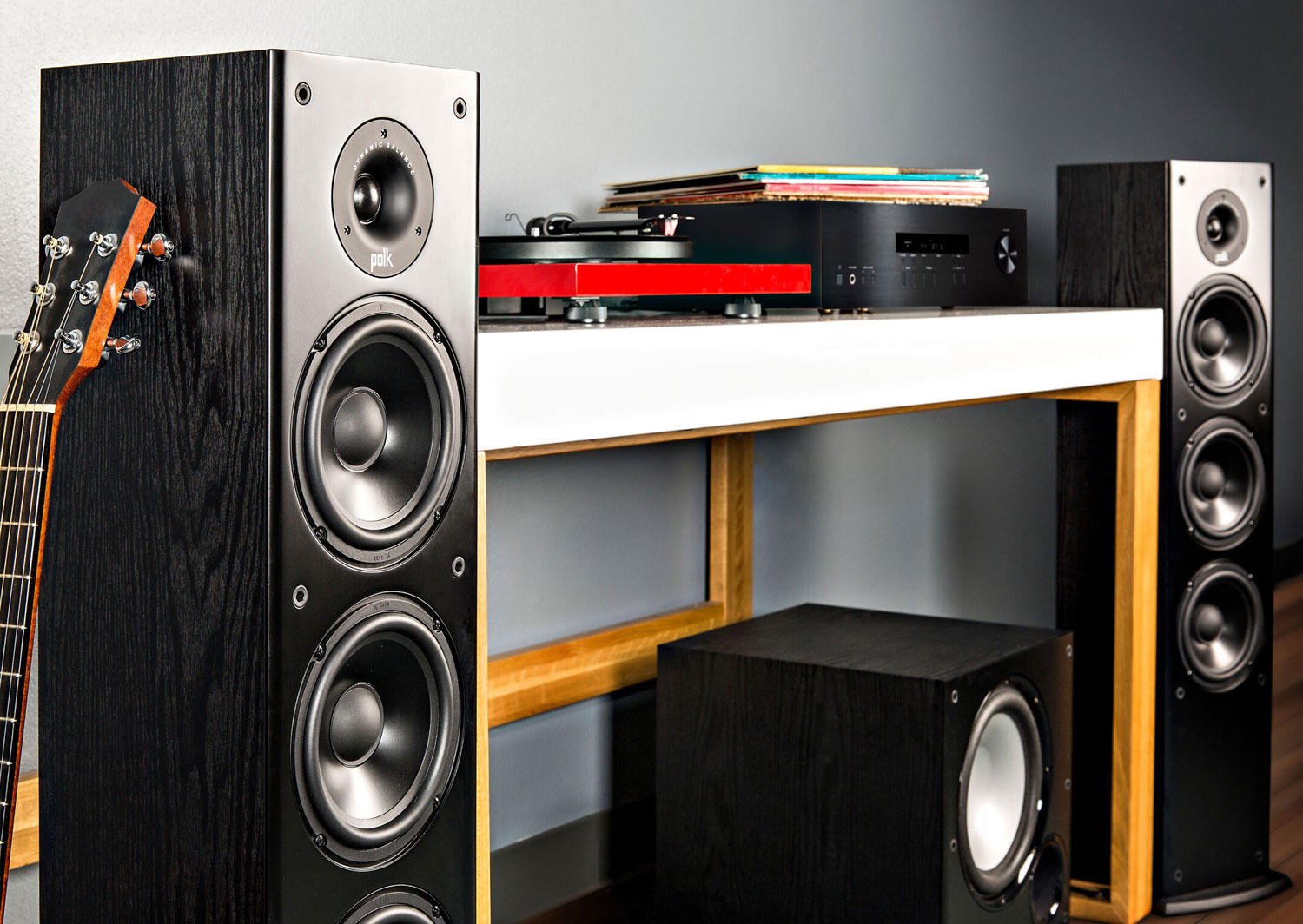 Elevate your home theater and music listening experience with the Polk Audio T50 floorstanding speaker. Engineered with Polk’s proprietary Dynamic Balance technology, this highly efficient tower speaker delivers premium acoustics without the premium price tag. The T50 features a carefully crafted driver array, including a 1-inch silk dome tweeter, a 6.25-inch composite woofer, and two 6.25-inch front-firing sub-bass radiators. This unique configuration produces well-balanced, crystal-clear highs, a wide-open mid-range, and massive, deep bass that completely fills the room. Housed in an acoustically inert furniture-grade MDF cabinet, the T50 brings your favorite movies, TV shows, and music to life with stunning clarity and dynamic impact.